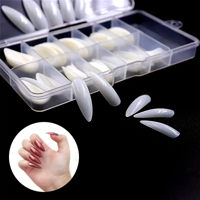 100pcs Box White Natural Clear Nail Tips Long Stiletto Nails Fake